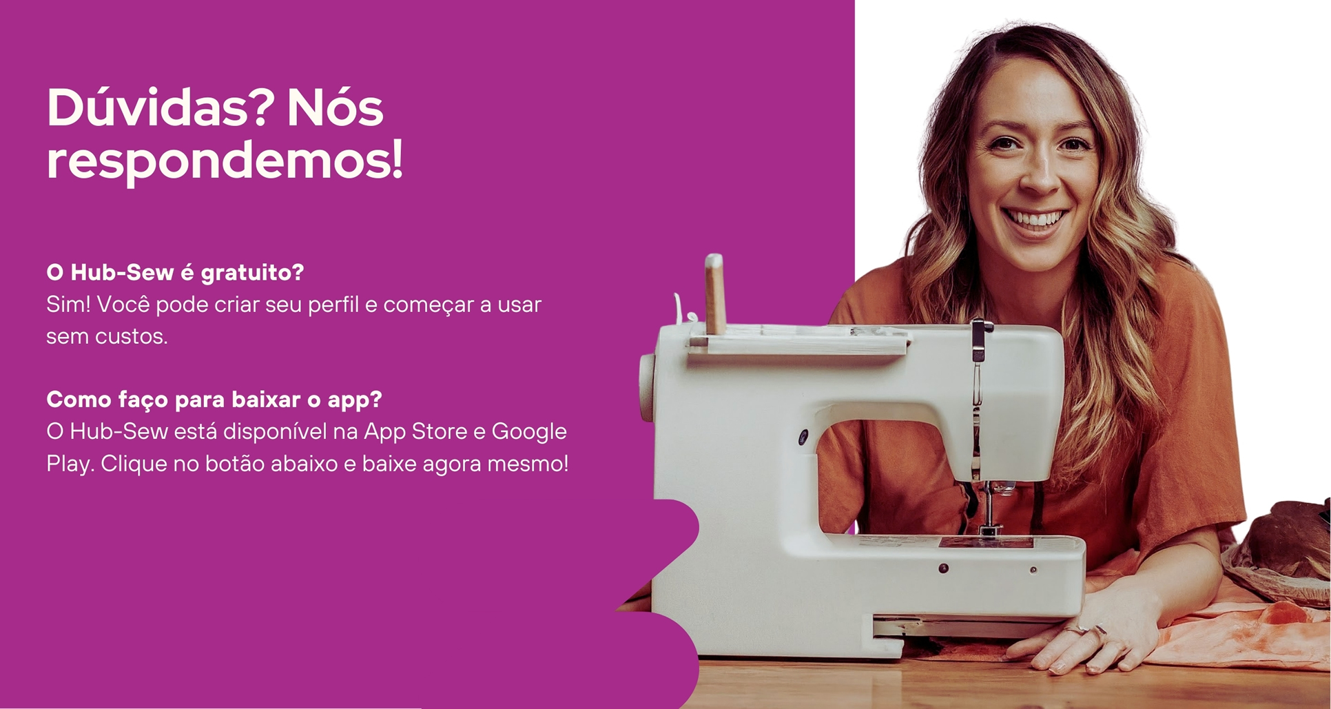 No Hub-Sew, queremos te ajudar a transformar sua habilidade em costura em uma fonte de renda constante! Se você é costureira ou tem uma empresa do ramo, o primeiro passo é se cadastrar gratuitamente no nosso app.